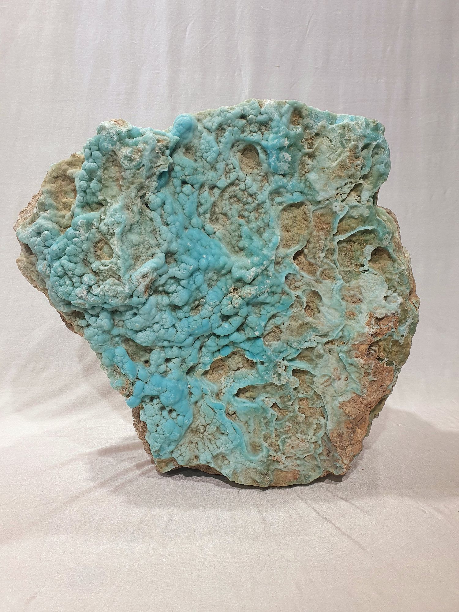 wie auf den Fotos zu sehen ein massiver türkis farbener Aragonit in Muttergestein. Neufund aus 2020 aus Afghanistan.