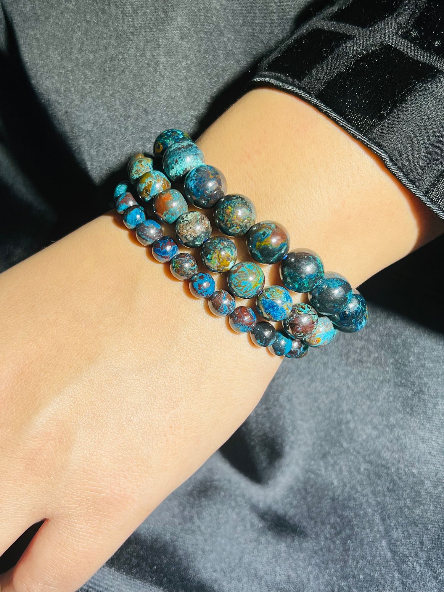 Unsere Chrysokoll Armbänder haben eine gute Qualität und sind 100% natürlich. Wie auf den Fotos zu sehen ist, haben sie eine schöne Intensive Farbe.
