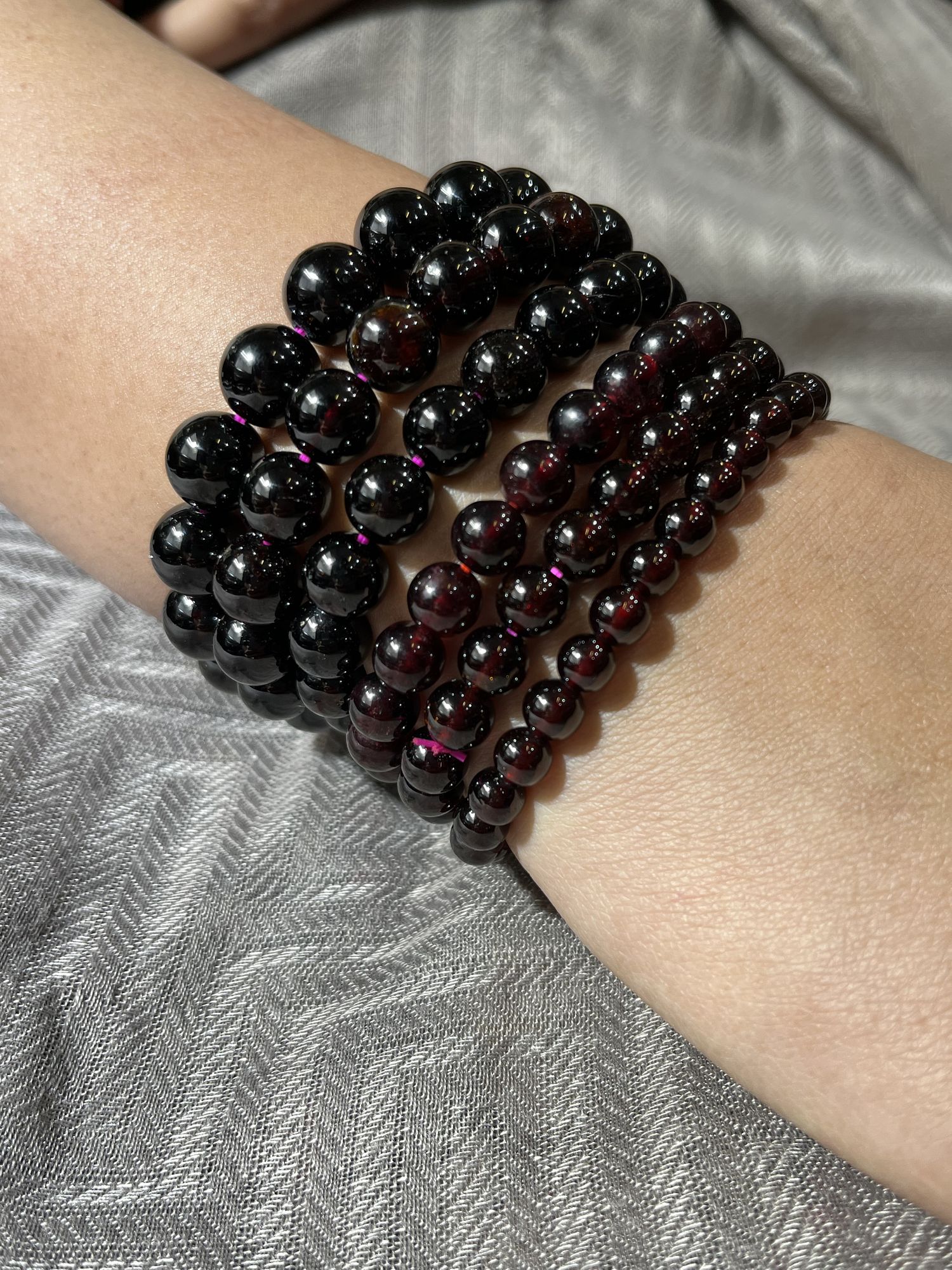 Der Granat ist hier in Form von wunderschönen Armbänder veredelt und in verschiedenen Durchmesser erhältlich