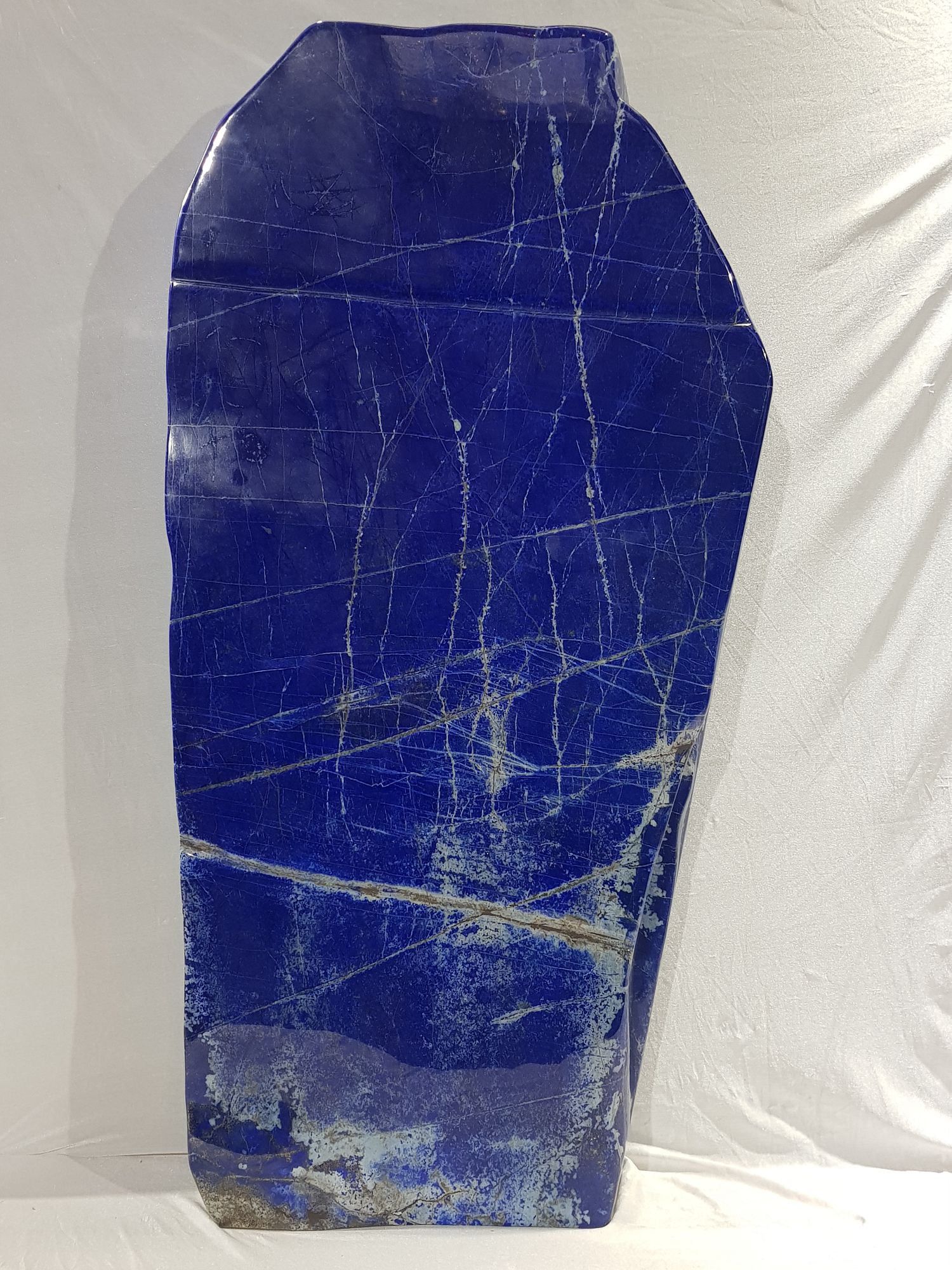 Zum Verkauf steht ein Lapis Objekt mit knapp über 100kg was schon selten ist, dann noch mit einer Länge von ca. 90cm und 12cm Dicke noch viel seltener. Wie auf den Fotos zu sehen ist, hat die Skulptur eine schöne Intensive blaue Farbe. Der Lapis ist 100% natürlich.