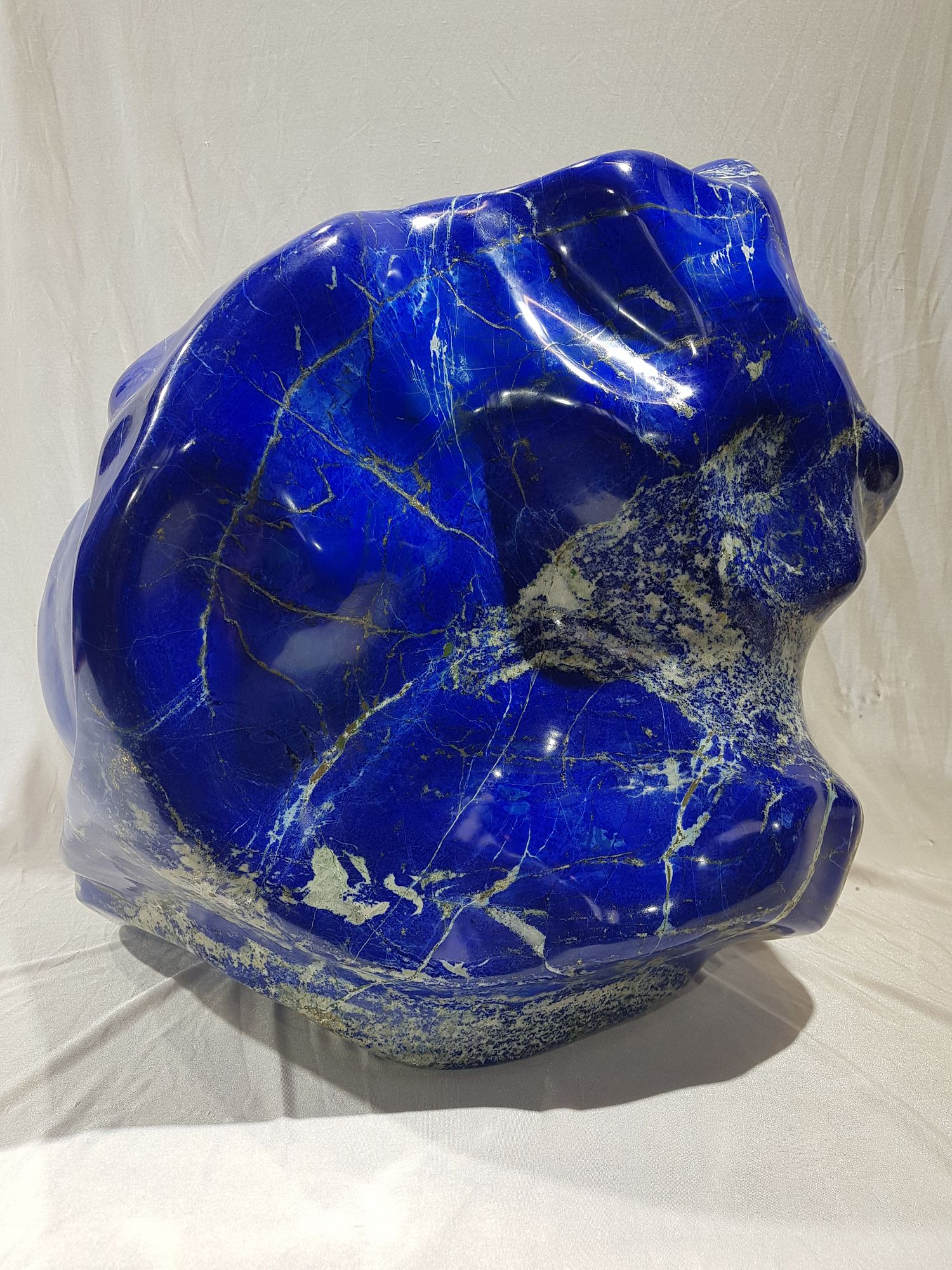 Diese ist eine der ersten großen Lapis Freieform Skulptur die nach unseren Information jemals geschliffen und poliert worden ist. Wir haben diese in Afghanistan in Auftrag gegeben.
