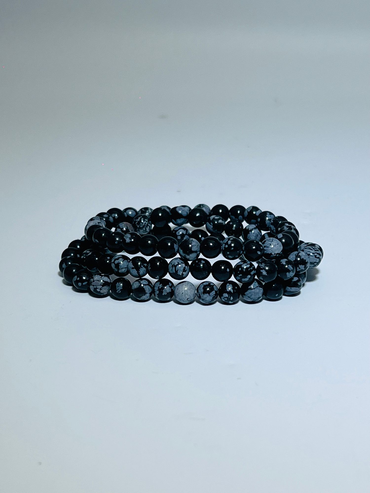 Mehr über Schneeflocken (Snowflake) Obsidian Stretch Armband