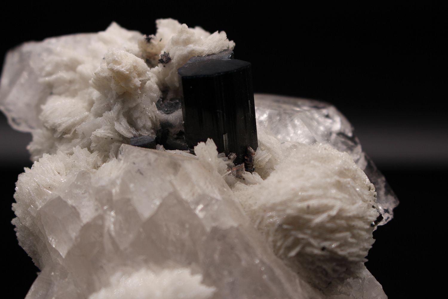 Mehr über Turmalin Blue Cap Stufe auf Fenster Quarz mit wunderschönen Albit Röschen